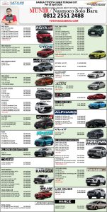 Cek daftar harga Toyota terbaru April 2026 di Jawa Tengah & DIY. Dapatkan promo menarik & cicilan ringan hanya di Nasmoco Solo Baru.
